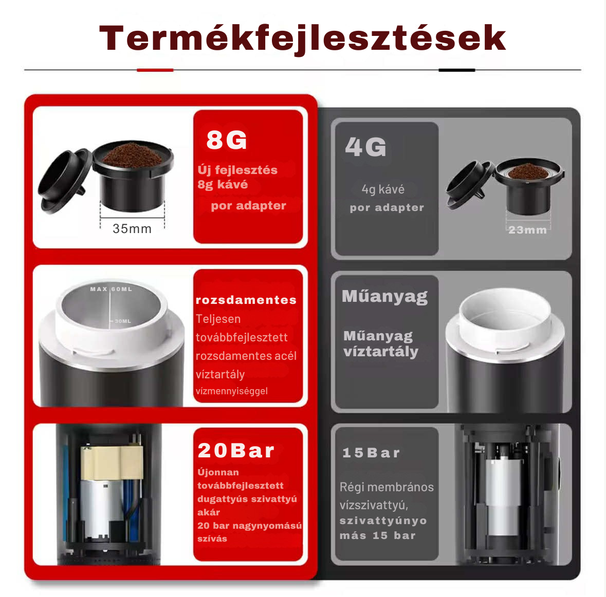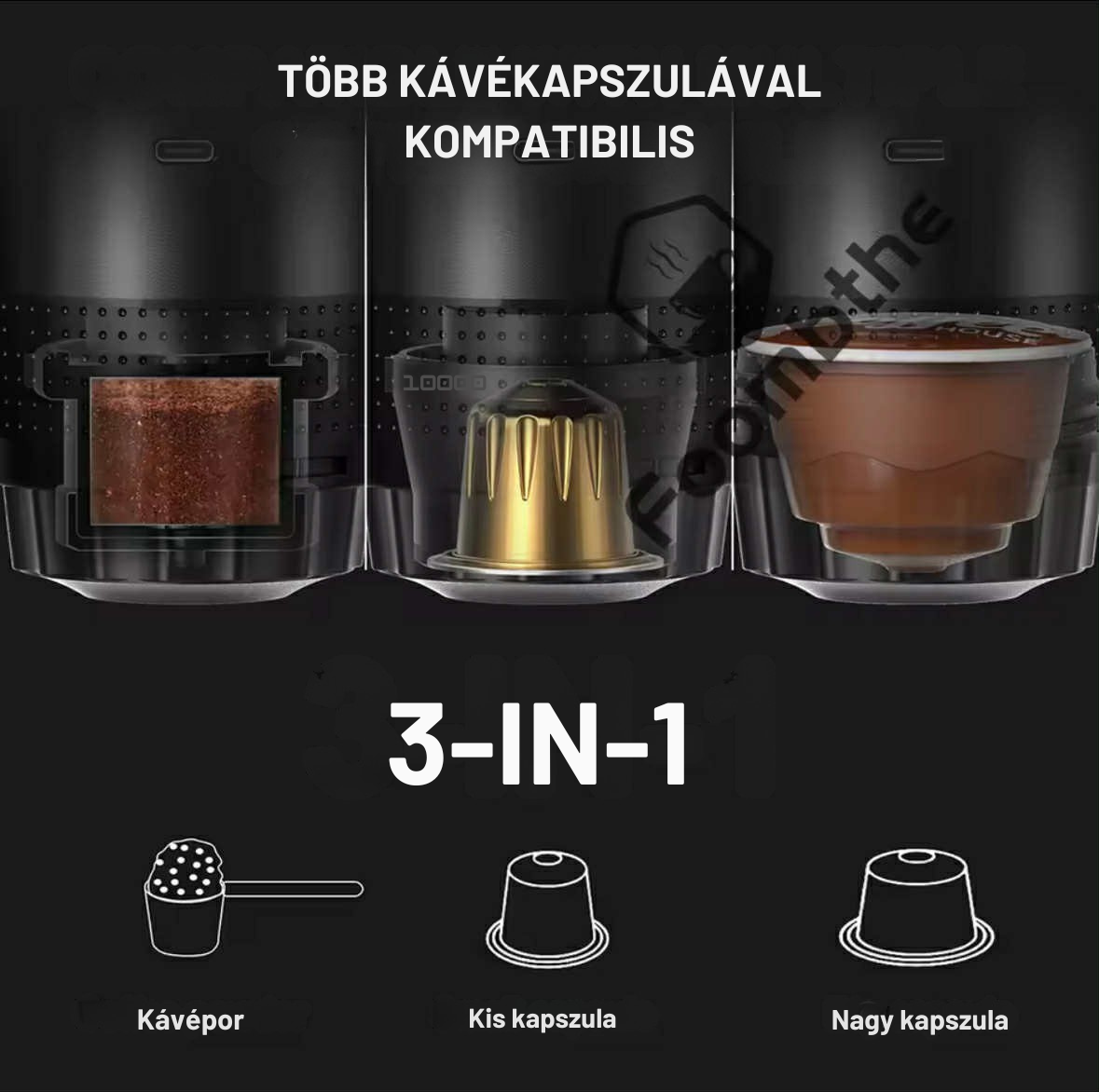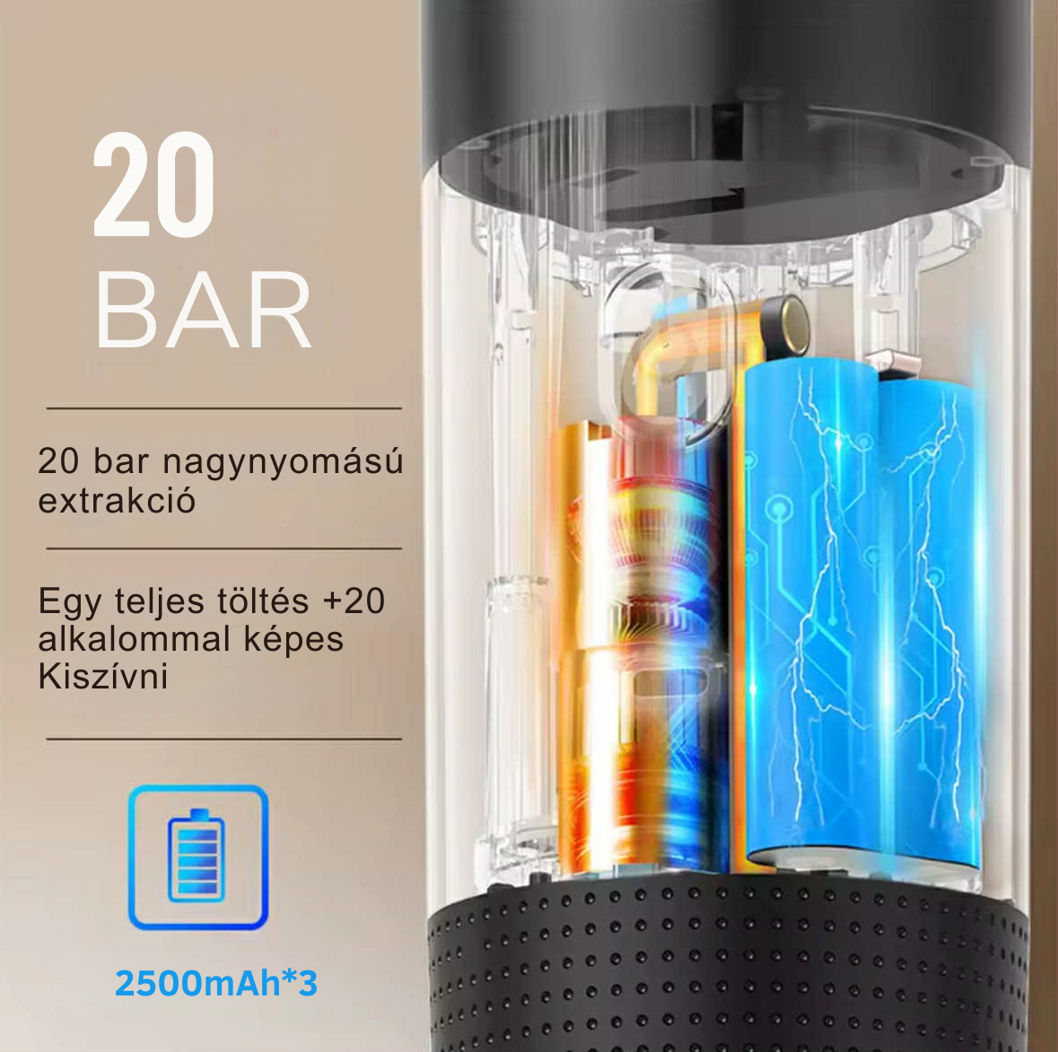 Ez a hordozható, vezeték nélküli kávéfőző a modern életstílushoz lett tervezve: akár autóban, otthon, irodában vagy a szabadban, mindig biztosítja a friss, illatos kávét.