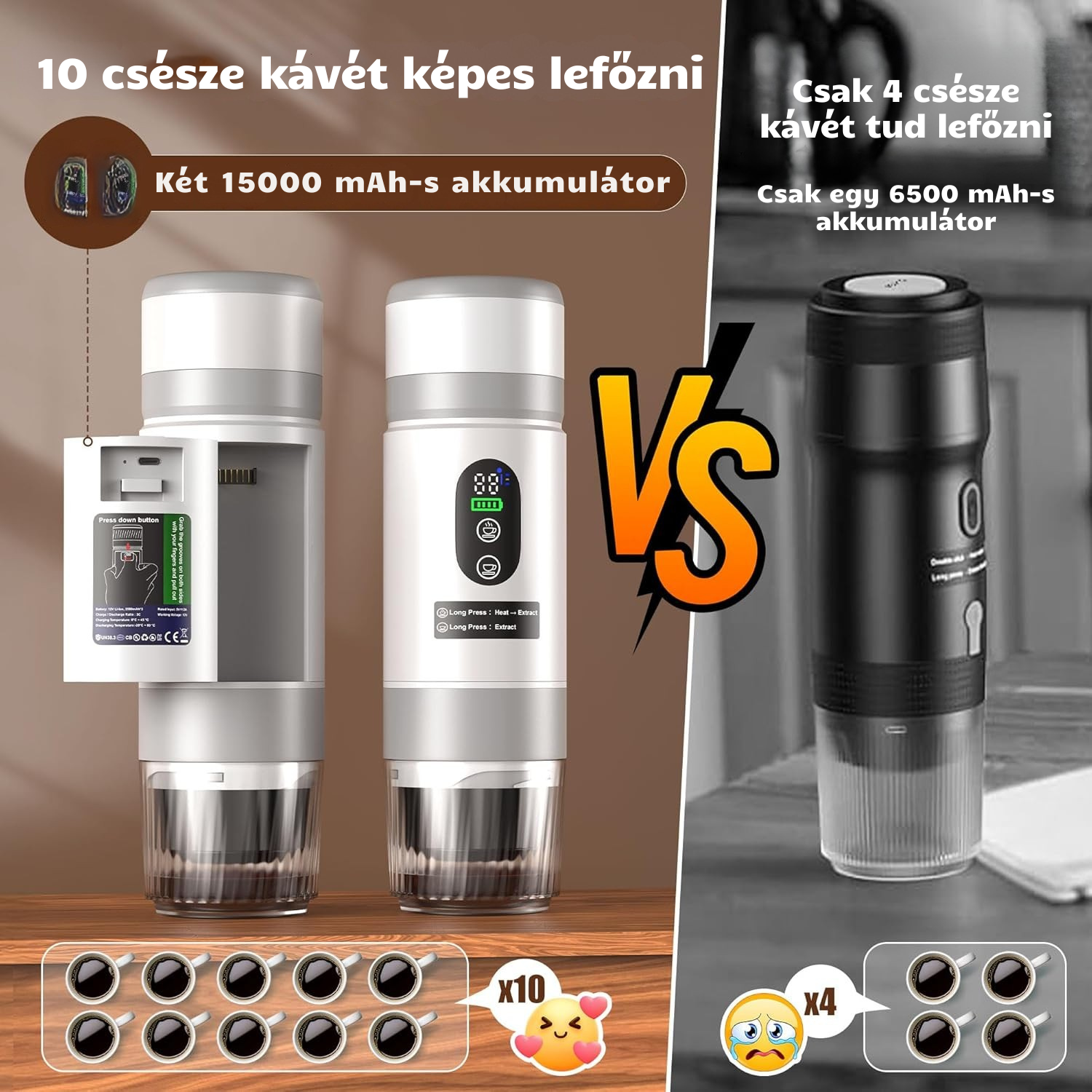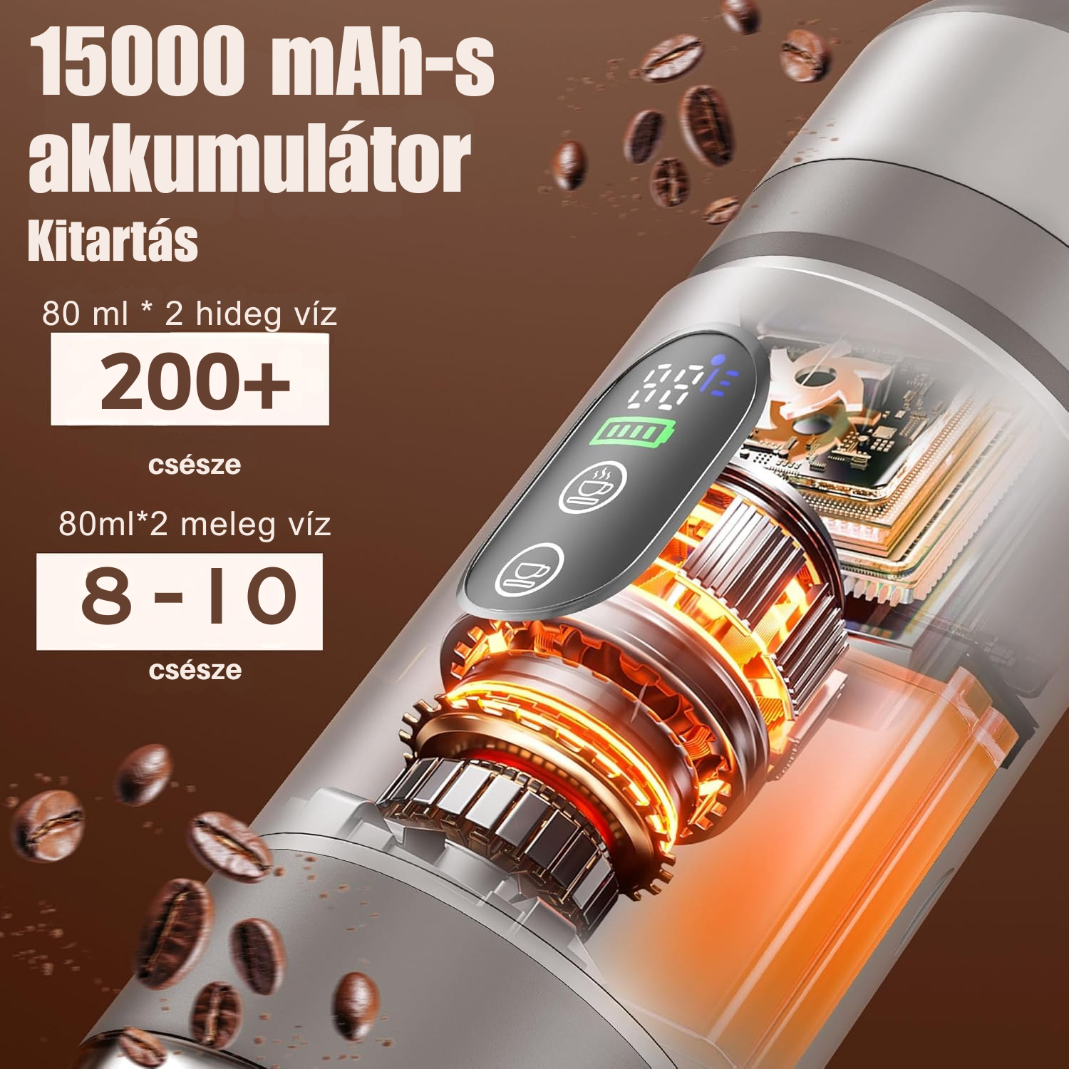 PocketCaffé – Hordozható, vezeték nélküli kávéfőző (szürke, NAGYOBB kapacitás)