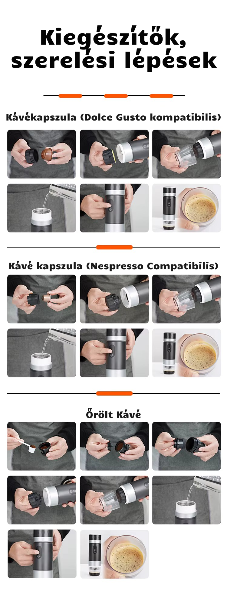 Használhatod őrölt kávéval, kis- és nagykapszulákkal is – így mindig azt a kávét készítheted, amit éppen megkívánsz.