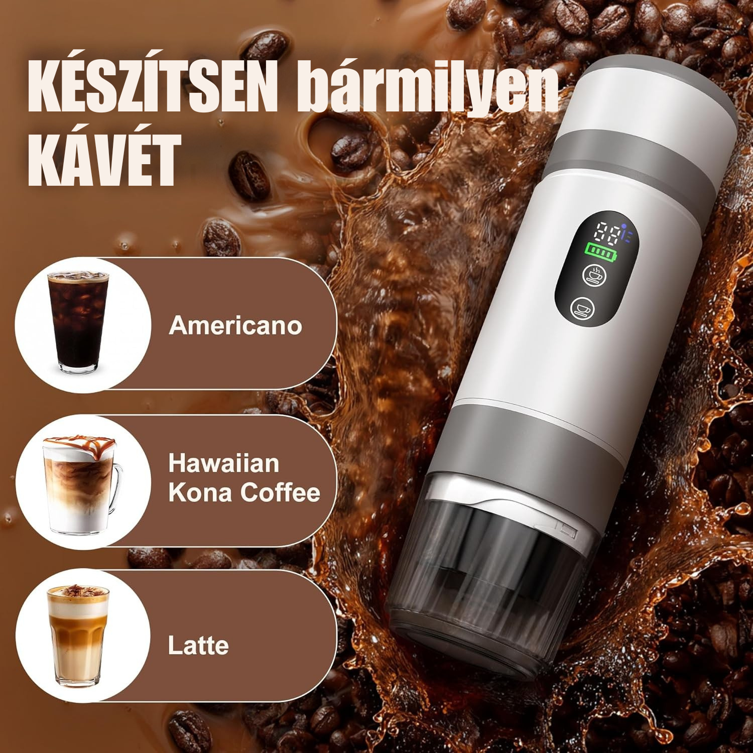 PocketCaffé – Hordozható, vezeték nélküli kávéfőző (fehér)